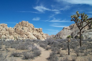 Schon gegen 8 Uhr ist es unerträglich heiß. Die Sonne brennt sich in meine schwarzen Motorradklamotten. Die Einfahrt des "Joshua Tree Nationalparks" ist gut ausgeschildert. An einem kleinen Pförtnerhäuschen müssen wir anhalten und uns ausweisen. Normalerweise müssten wir für jeden Besuch eines Nationalparks separat bezahlen, aber wir haben uns über das Internet eine sogenannte "Golden Eagle Card" besorgt, die uns berechtigt, ein Jahr lang alle Nationalparks der USA zu besuchen.