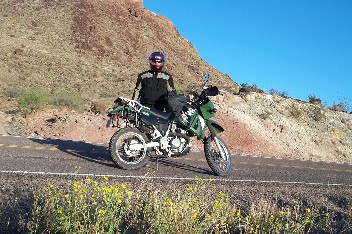 Ein Bär von Mann grinst mich mit schelmischen Augen an und fragte im breitesten texanischen Akzent nach meinem Reiseplan. Wieder muss ich mich für meine Motorradwahl rechtfertigen. Auch Jerry ist der Meinung, dass ich auf einer großen BMW GS wie Klaus sie fährt, besser aufgehoben wäre. Allerdings gibt auch er sich mit meiner Erklärung zufrieden.